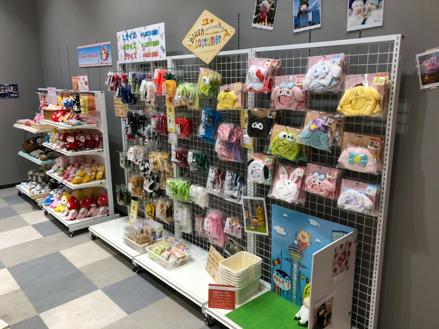 ぬいぐるみやマスコットをはじめ、バッグや扇子などのお出かけグッズも取り揃えています。